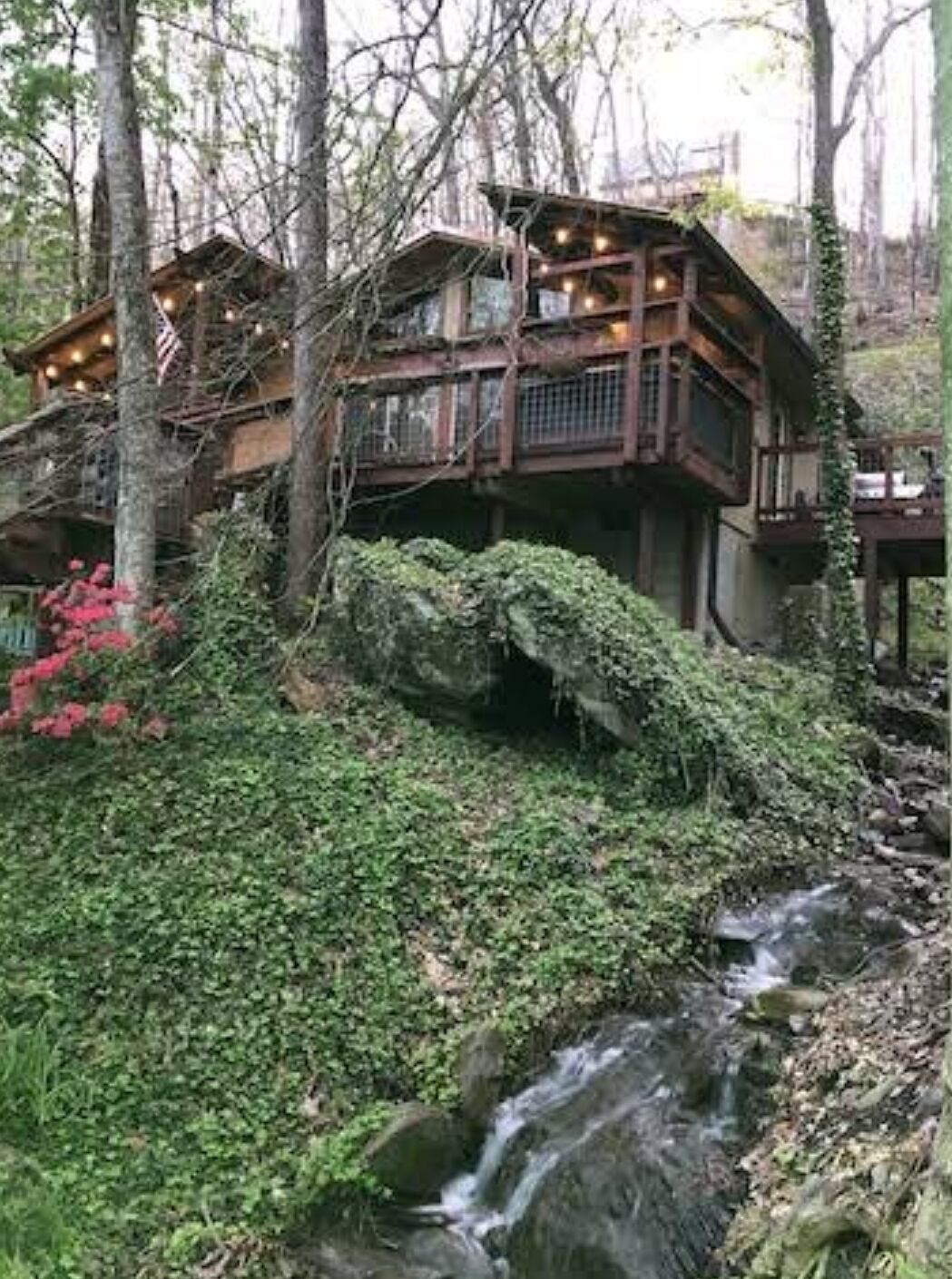 If outdoor adventure is what you seek, you might visit the Great Smoky Mountains National Park, or you might stay in your own private haven. Five decks provide gorgeous views of babbling mountain streams. Enjoy a soak in the hot tub as dinner is cooking on the gas grill. Eat and fellowship with one another as you sit around a table with a fire pit at its center. After the meal, lounge on a sofa under relaxing soft lights, all while being lulled by nature’s own melodious symphony. Ambiance is key to a memorable adventure, and Double Creek Cabin is overflowing with just that.